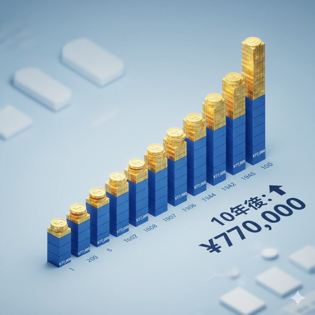 スマホの契約を切り替えるという、たった15分の作業。それが10年後のあなたに「77万円のボーナス」を確約します。副業で77万円の純利益を出すのがどれほど過酷か、知っているあなたなら、この「15分の作業の価値」が理解できるはずです。